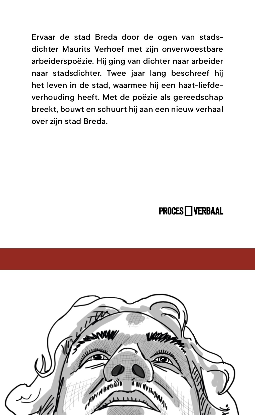 Ervaar de stad Breda door de ogen van stadsdichter Maurits Verhoef met zijn onverwoestbare arbeiderspoëzie. Hij ging van dichter naar arbeider naar stadsdichter. Twee jaar lang beschreef hij het leven in de stad, waarmee hij een haat-liefdeverhouding heeft. Met de poëzie als gereedschap breekt, bouwt en schuurt hij aan een nieuw verhaal over zijn stad Breda.